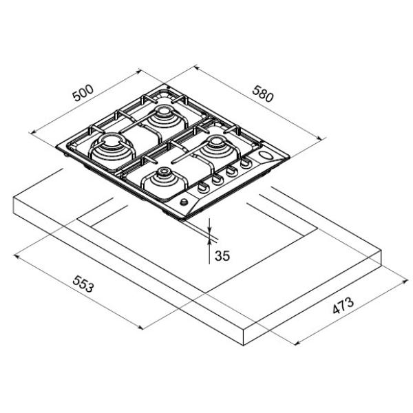موقد غاز - 60 سم 4 عيون شبك ثقيل مفاتيح جانبية اشعال ذاتي كهربائي صمام أمان |